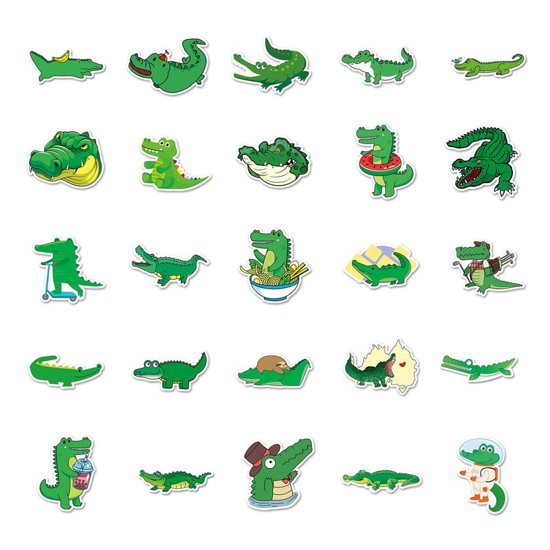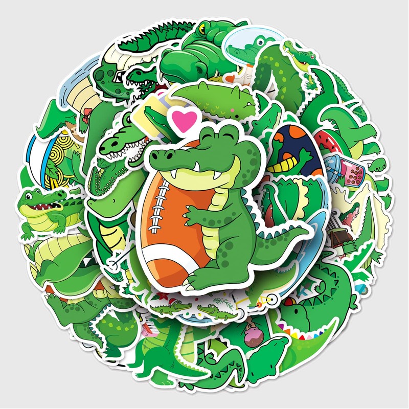 Bric Dodo Pack of 50 Crocodile Stickers Car Laptop Phone Guitar Skateboard Motorcycle Bicycle Crocodile Stickers Set Vinyl Waterproof Aesthetic Stickers for Teenagers Children Adults
