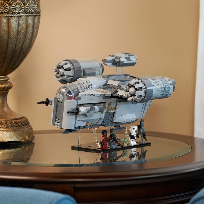 Upgrade your LEGO Star Wars collection with this display stand custom-designed to work with LEGO set 75292, The Razor Crest. It features one main stand as well as a base to hold 5 minifigs. Also includes a genuine LEGO transparent brick to display escape pod in launch mode.