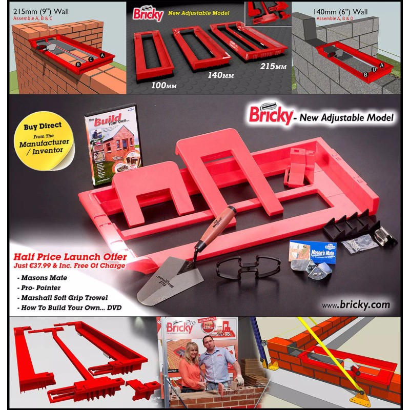 Bricky - Wall Building / Bricklaying Tool + trowel (Adjustable Model)