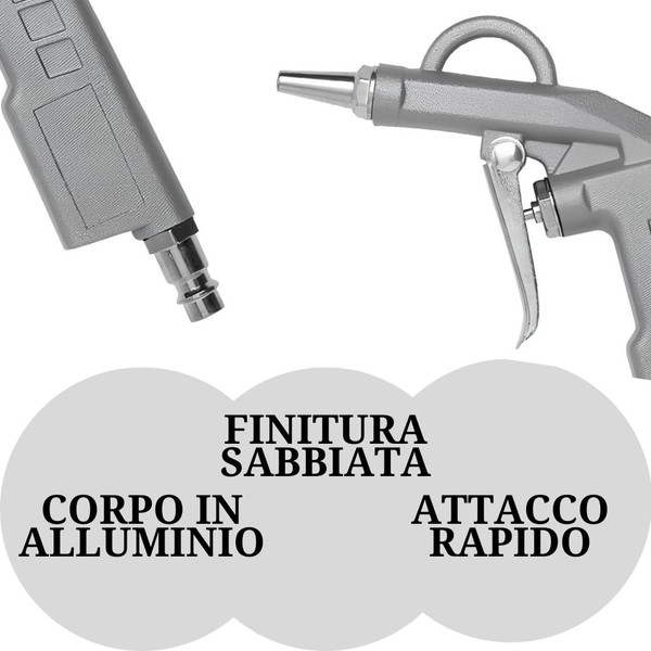• QUICK RELEASE CONNECTOR: The quick release connector greatly simplifies the use of the gun, allowing you to quickly connect and detach it from the compressor. A practical system that saves time and offers more flexibility while working