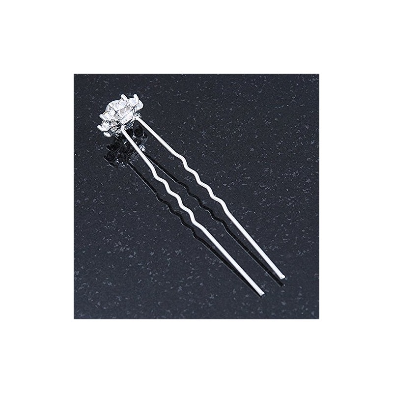 Bridal/Wedding/Prom/Party Set Of 6 Rhodium Plated Crystal Simulated Pearl Flower Hair Pins