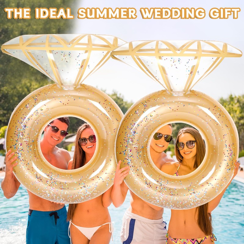 - Wide applications: Ideal for a variety of events, this bridal shower gifts set is ideal for a bachelorette party, bridal showers, engagement or wedding party. The inflatable diamond ring pool float makes for bachelorette photo props, while the bride pool towel adds a touch of elegance to your bridal look. Use them for beach relaxation, poolside revelry, or to add excitement to any celebration, making them great additions to your wedding or bachelorette party supplies.