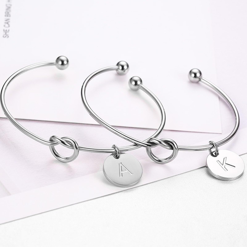 Bridesmaid Gifts Initial Bracelets for Women Bridesmaid Bracelet Tie The Knot Bangle Bracelet Open 26 Letters A-Z Letter Charm Jewelry for Wedding