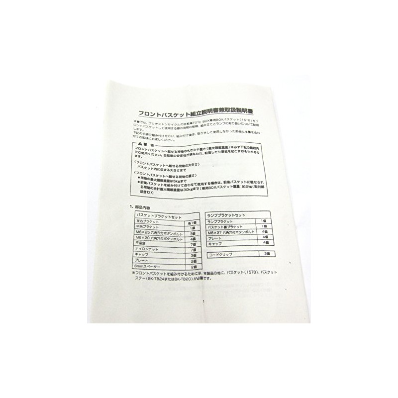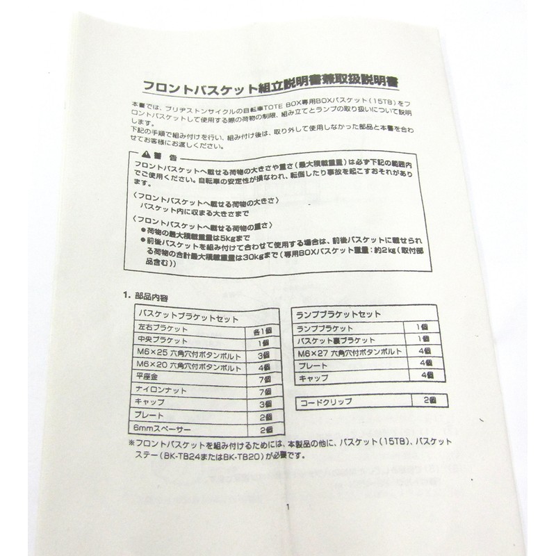 - Bridgestone Tote Box Basket Bracket SU (Stainless Steel) BKB-TB P5901 F762010SU; Material: Stainless Steel/Steel; Weight: 17.6 oz (500 g); Basket Bracket, Lamp Bracket, Screw Set, Wire Clip, Assembly Instruction Manual JAN: 497716066957