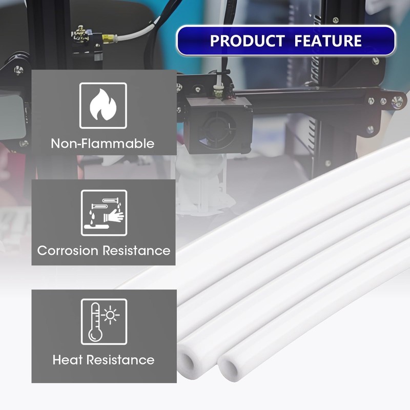 The product is white 1 m Teflon hose PTFE tetrafluorine hose 3D printer accessories remote feed tube used for 1.75 mm filament 3D printer pneumatic hose, for example also for 3D printers.