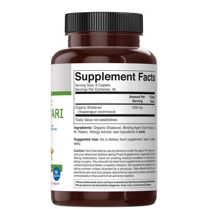 - 1,500mg of Organic Shatavari Per Serving, 750mg Per Tablet