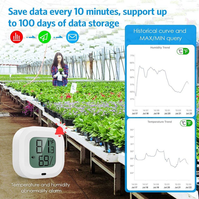 - Data storage export: the wireless thermometer hygrometer records the data every 10 minutes in the app, which corresponds to a total of up to 100 days. An intelligent device (e.g. B. your phone) can be connected to up to 100 temperature sensors at the same time. Supports Android 4.3 or above, iPhone 4s or above smart device.
