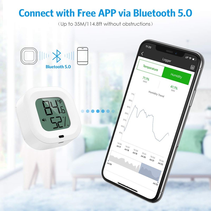 - Bluetooth temperature sensor: the Brifit temperature and humidity sensor uses a high-end Bluetooth 5.0 chip. You can access the Bluetooth thermo-hygrometer remotely by connecting to the Sensor Blue app. The connection distance upgrades to within 35 m (114.8 ft). Sensor monitors the environment reliably and 24/7.