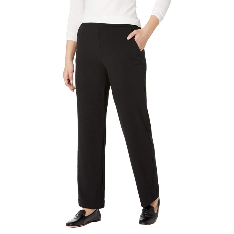 Briggs New York Women's Flat Front Pull On Pant with Slimming Solution, Black, 12 Short
