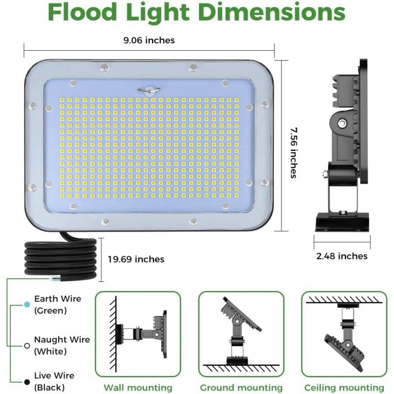☑【IP65 Waterproof & Three-Wire Input】IP65 waterproof function enables this outdoor floodlight to be used indoors and outdoors, ensuring that this waterproof floodlight can work normally in bad weather, such as rain, snow, hot or cold environment. AC 100-277V input voltage meets the electricity requirements of many countries. The wiring mode of the three-wire input better protects the circuit and ensures your safety, and greatly increases the application range of the lamp.