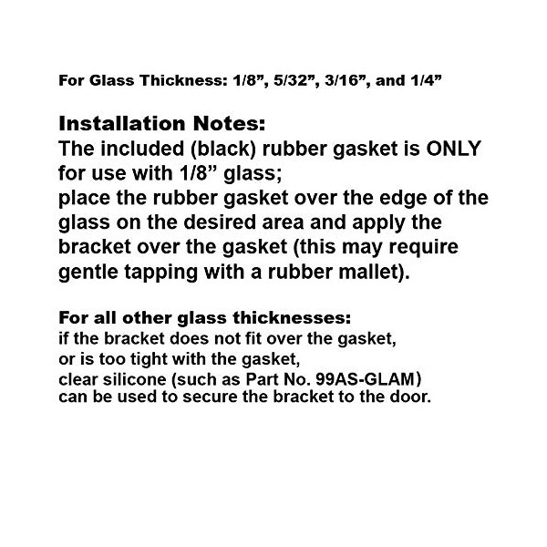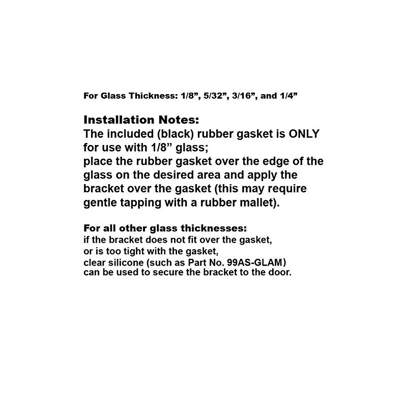 • Fits Glass Thickness: 1/8", 5/32", 3/16", and 1/4"