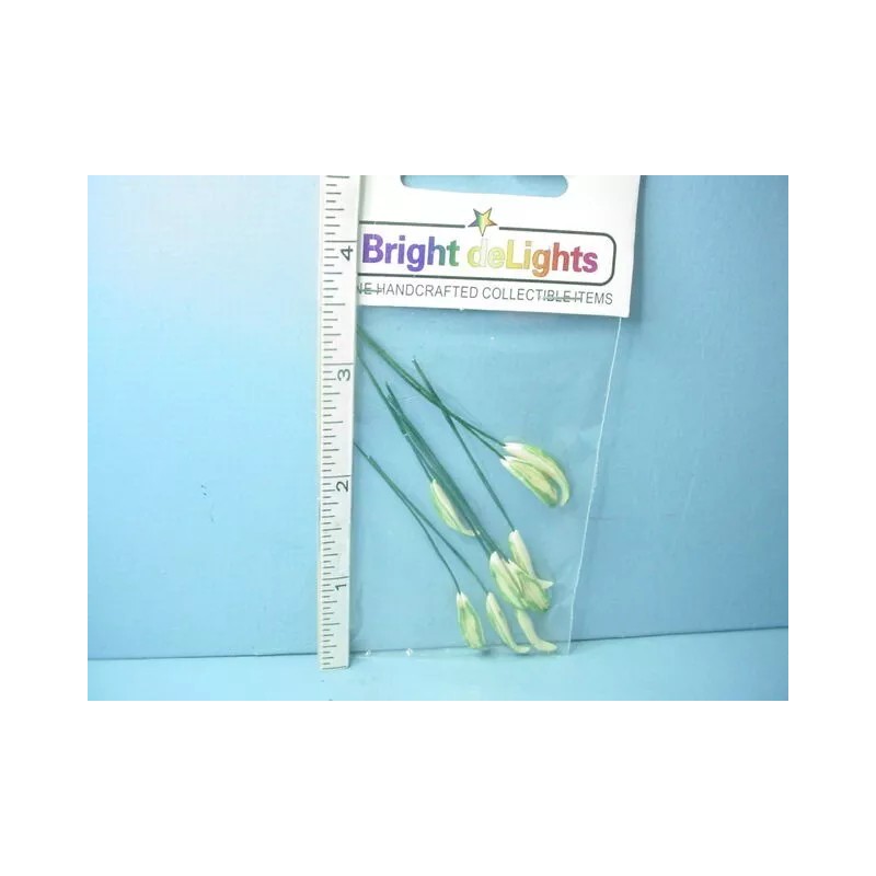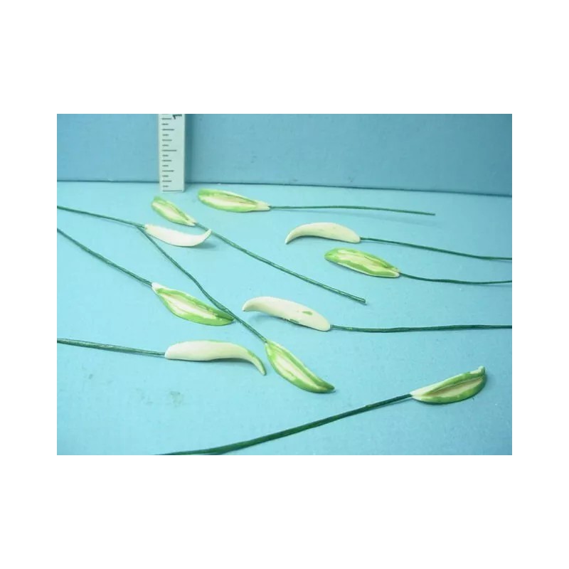 Bright Delights Miniature Green & White Leaves on Wire (10) #3112 Bright Delights 1/12th