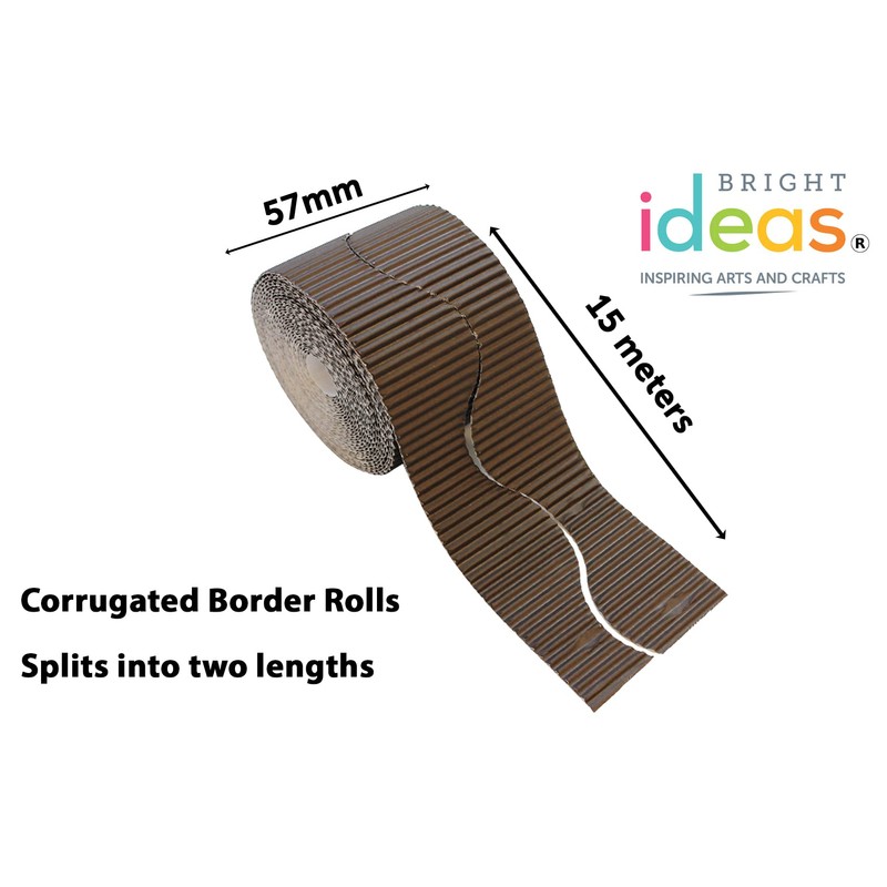 - Bright Ideas Corrugated Border rolls are supplied in a clear plastic wrap for extra protection from dust and moisture – rolls are in single colours and held together by a band to keep rolls nice and together