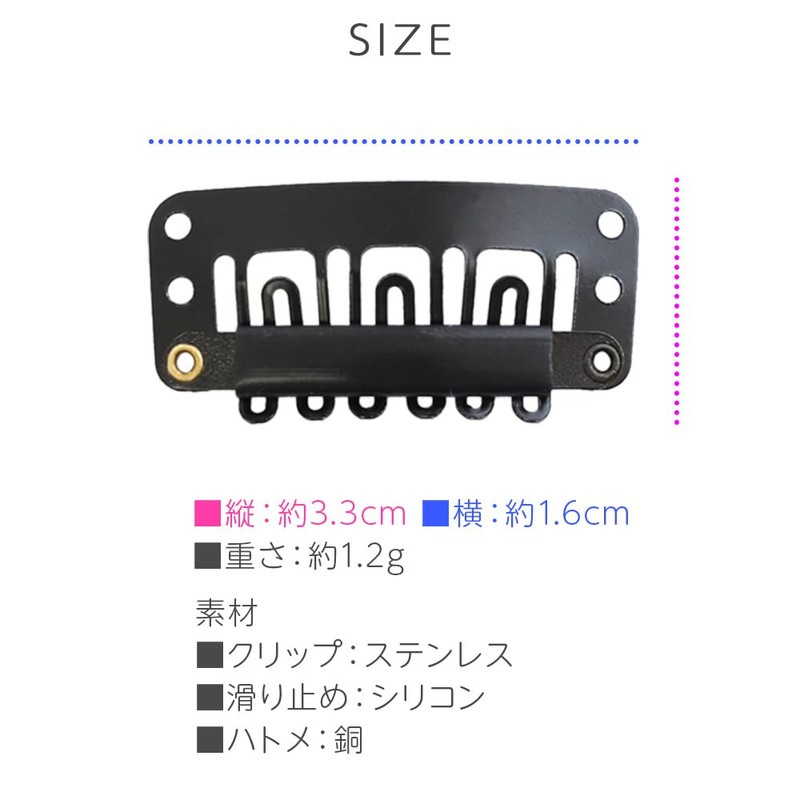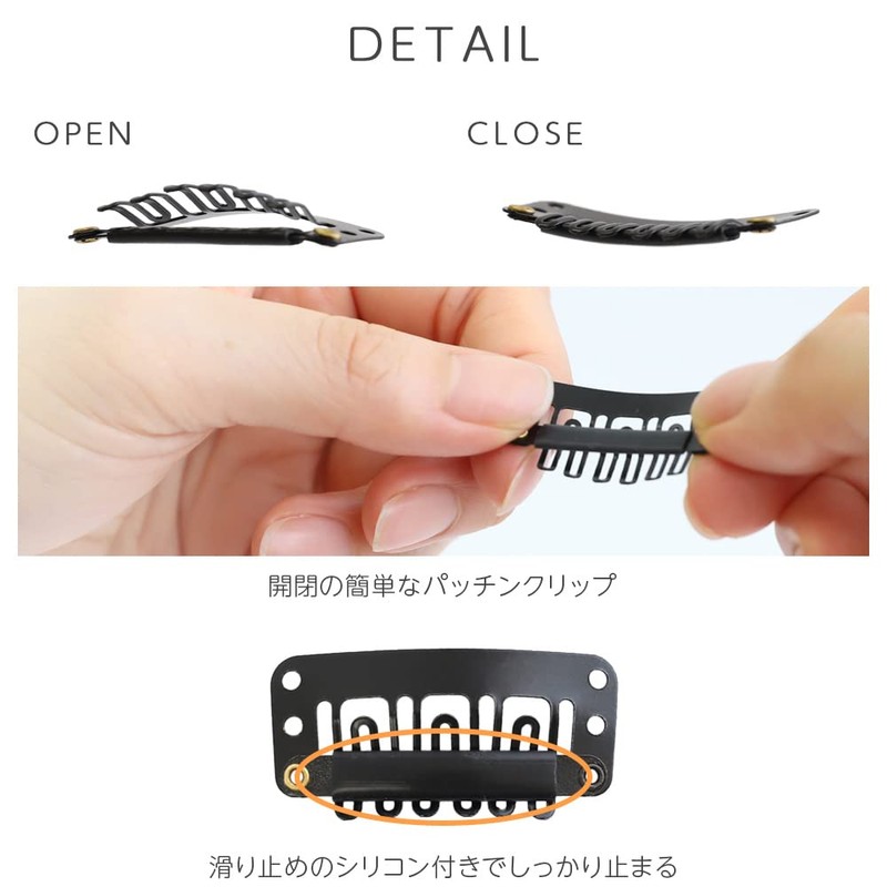 - Description: Set of 5 wig clips to prevent wigs from slipping. Silicone is attached to the part where the claws connect to the clip for excellent holding power. It can be used not only for full wigs, but also for point wigs such as one-touch extensions and hairpieces. Use it to replace the clip when you want to add or break it