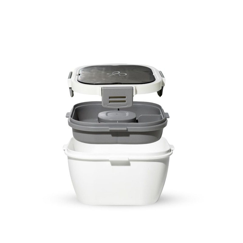- Convenient Design: Features a lower compartment/bowl, toppings tray, and dressing container with easy-to-open clips for an airtight seal, ensuring your salad stays intact during transport.