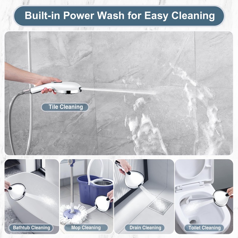 • Built-in Power Wash Mode: Tired of unsightly soap scum and dried hair after every shower? This makes you spend a lot of time on cleaning. Now just turn the hand shower to the high pressure power wash mode, they will be cleaned up in seconds, leaving you in a good mood