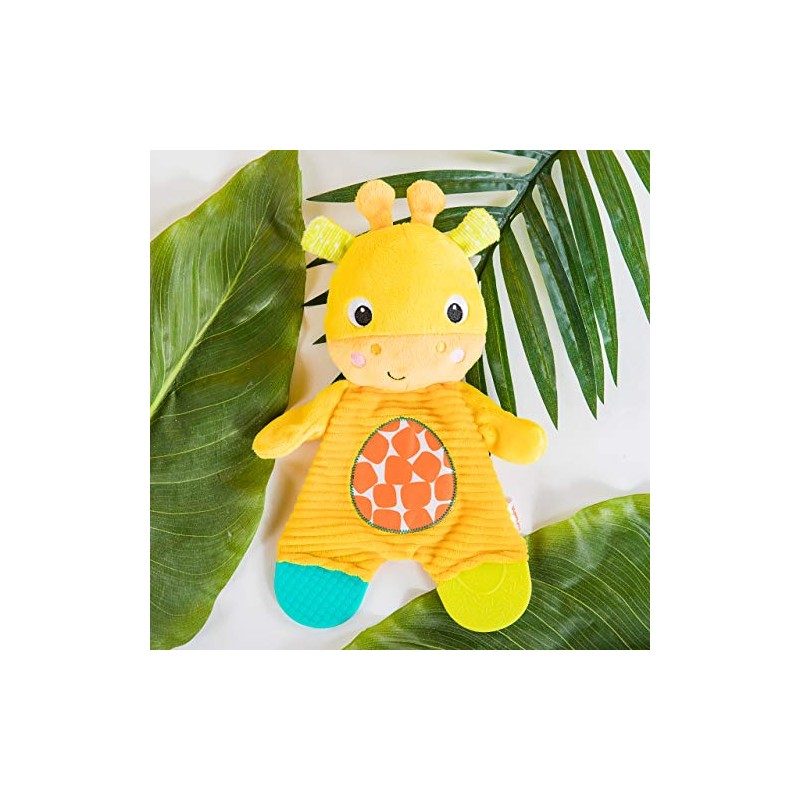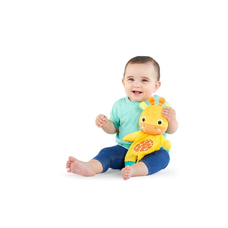 Add creature comforts to baby's uncomfortable teething time. The Snuggle & Teethe safari-themed plush toy from Bright Starts is made to soothe teething babies wherever they go. Baby will love the snuggly-soft fabric and captivating crinkles of this newborn toy. Not only is this toy fun to cuddle, but their feet double as teethers to help soothe aching gums. With this bright yellow giraffe buddy, things are only looking up, up, up!