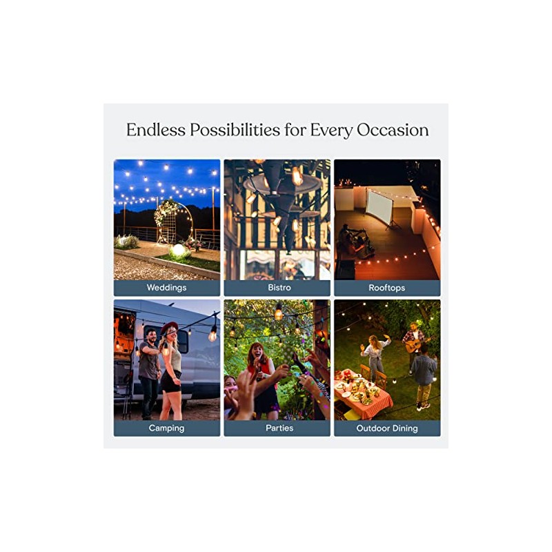 • Install Flexibility Makes this the Best Carnival Light Strand for Weddings, Birthdays and Parties: Place the solar panel almost anywhere with the included stake and clip. Solar string lights don't need an outlet, so even spaces far from a building can be well lit. The ring over each bulb takes hooks or guide wire - connect all for a straight-line look or just some of the rings for a scalloped look.