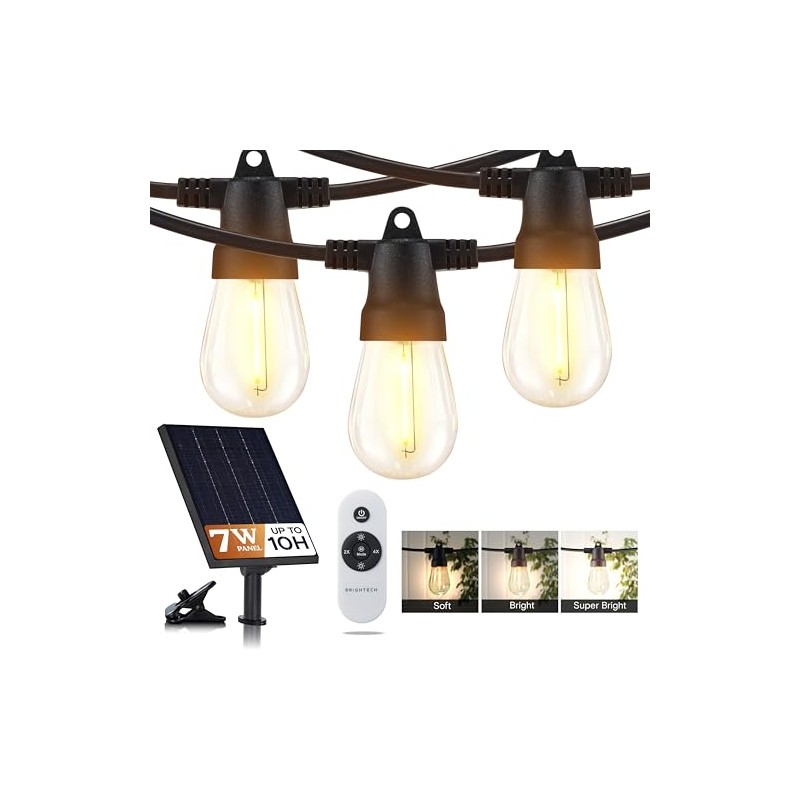 Brightech Solar String Lights with 32 Hanging Edison Bulbs and Brightness Controls with Remote 7W-104 3000K