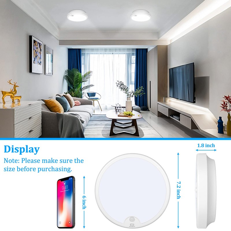 - Perfect Size for Any Places: With delicate size(7.2 inch in diameter and 1.8 inch in width) and white appearance, our close to ceiling lamp will be perfect for any dark areas, such as closets, stairs, storage rooms, basements, hallways, sheds, laundry rooms, bathrooms, etc