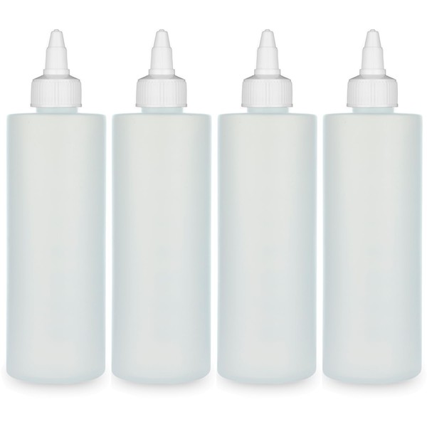 BRIGHTFROM Condiment Squeeze Bottles, 12 OZ Empty Squirt Bottle with Twist Top Cap, Leak Proof - Great for Ketchup, Mustard, Syrup, Sauces, Dressing, Oil, Arts and Crafts, BPA FREE Plastic - 4 PACK
