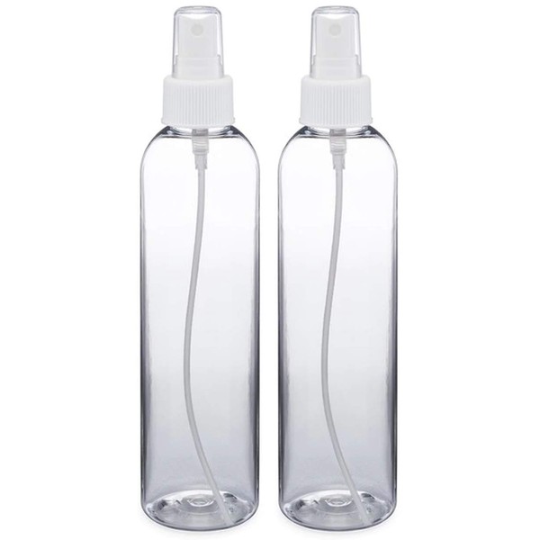 BRIGHTFROM Fine Mist Spray Bottles 8 OZ, Empty Refillable Containers - Essential Oils, Disinfectant Spray, Water 2 PACK (Clear, White Mist)