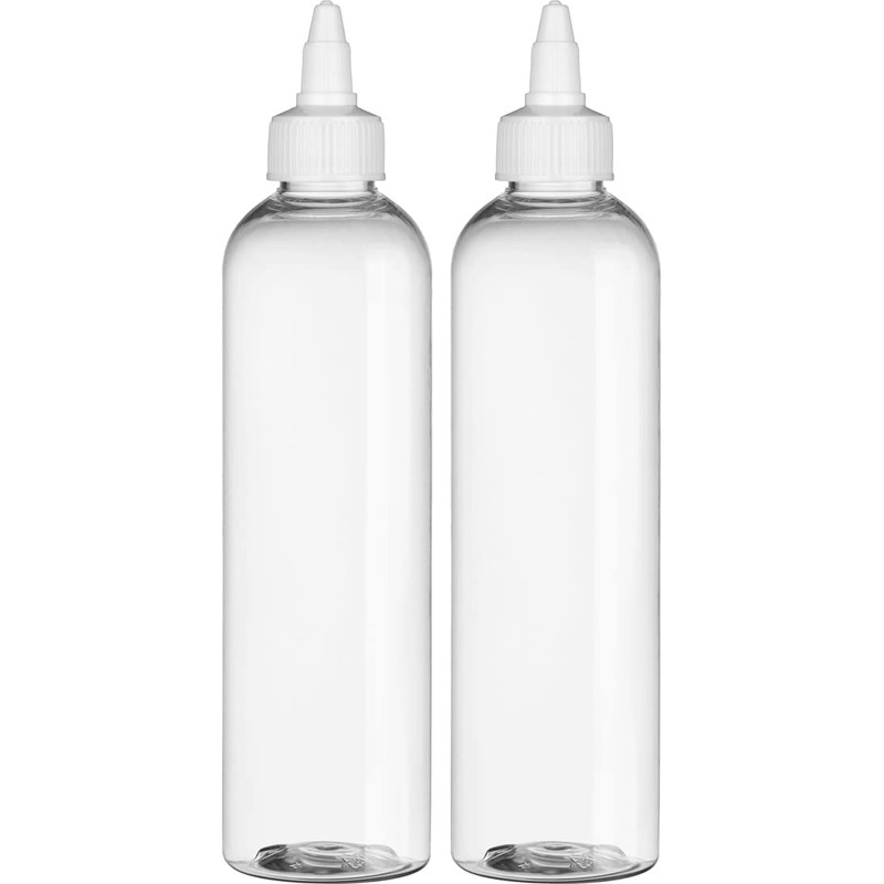 BRIGHTFROM Twist Top Applicator Bottles, 8 OZ Crystal Clear, Squeeze Empty Plastic Bottles, BPA-Free, PET, Refillable, Open/Close Nozzle - Multi Purpose (Pack of 2)