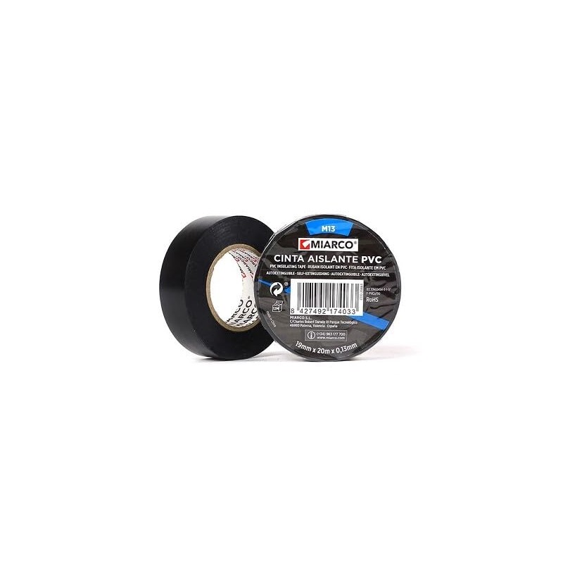 - The white PVC tape MIARCO M13 offers a width of 19 mm and 10 m length, with a thickness of 0.13 mm, ideal for sealing and light insulation work that requires precision