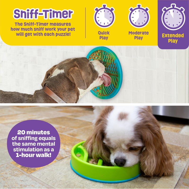 - Multi-Level Snacktime Challenge: Dogs sniff, solve, and snack with this combination slow feeder and lick mat that helps ease anxiety and promote positive behavior!