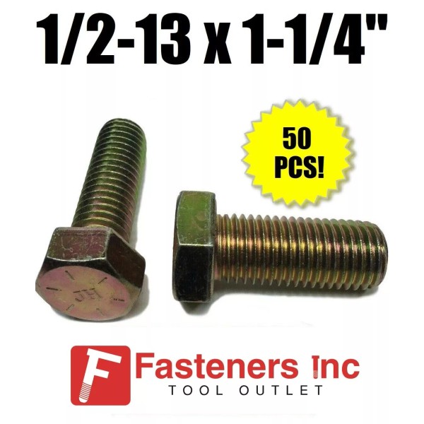 Brighton Best (Qty 50) 1/2-13 x 1 1/4" Hex Bolt Zinc Plated Grade 8 Cap Screw Full Thread