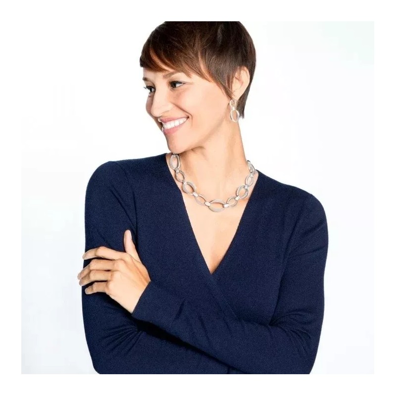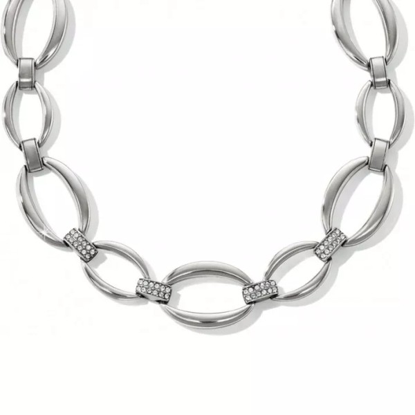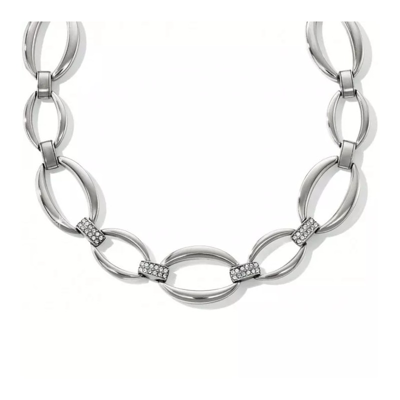 Bold, oval links in gleaming silver are connected by fine quality crystal-embellished ones, making a simple yet elegant statement.
