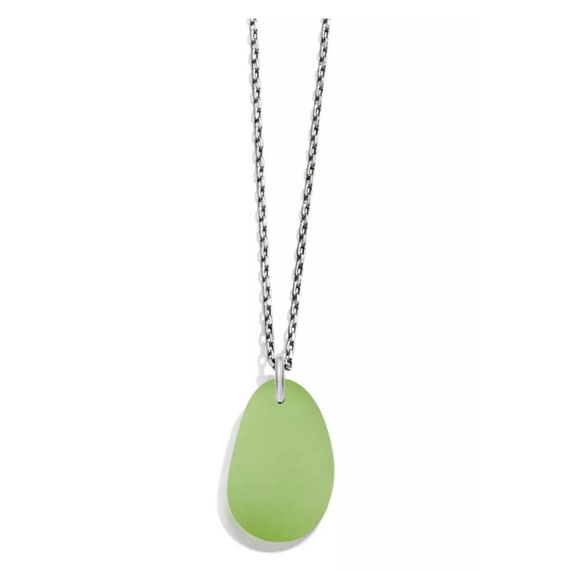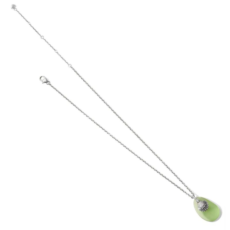 After countless spins in a tumbler, this stunning recycled "sea glass" pendant has the same resplendence that nature creates via water, moon and tides. The silver shell on top lends another coastal vibe to the nautical piece.