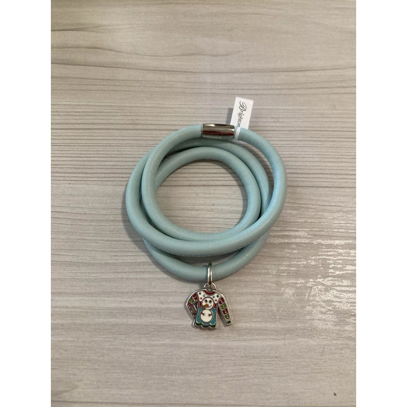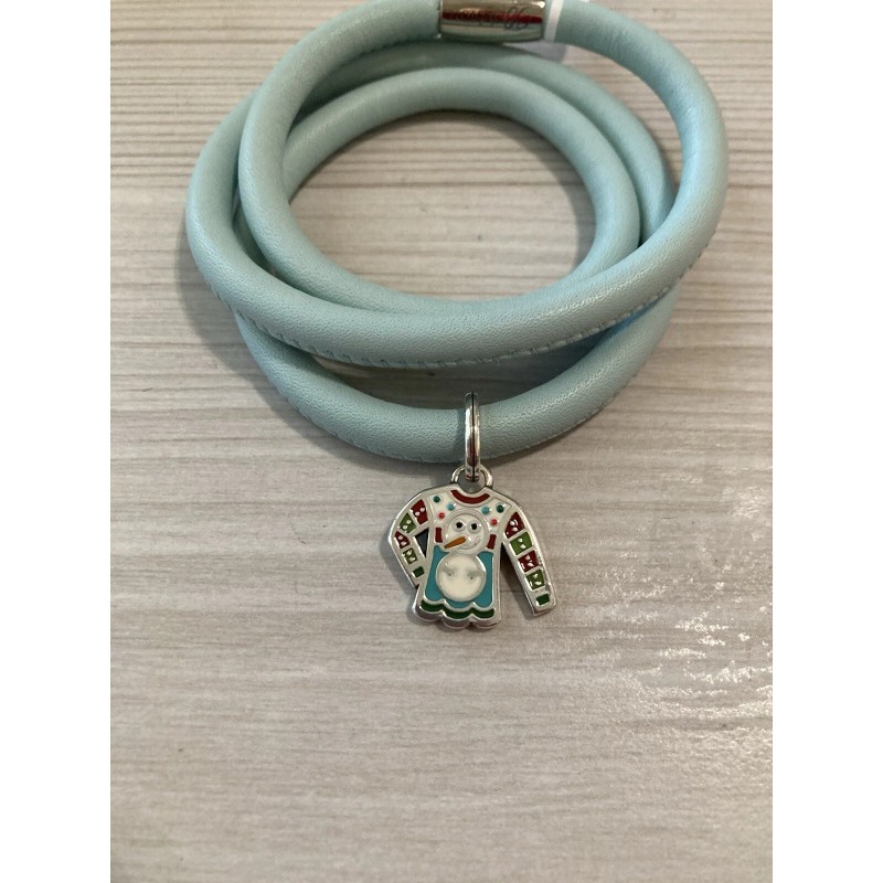 Brighton Woodstock Triple Mint Leather Bracelet w/ Ugly Sweater Charm Bead NWT