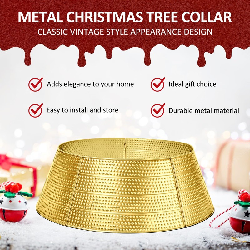 - 【Exquisite Reflective Finish】Elevate your holiday décor with our metal Christmas tree collar. Handcrafted to ensure long-lasting durability and adorned with a unique hammered design, this tree collar is a must-have for any chic farmhouse-style Christmas display;