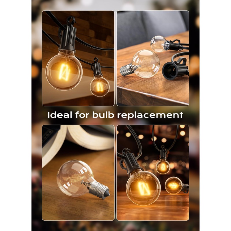 Brightown G40 Replacement Light Bulbs, Clear Globe Bulbs Replacement for Outdoor String Light, E12 Candelabra Base, Incandescent Round Bulbs for Patio Cafe Bistro Decor, 5W 120V, Warm White, 25 Pack