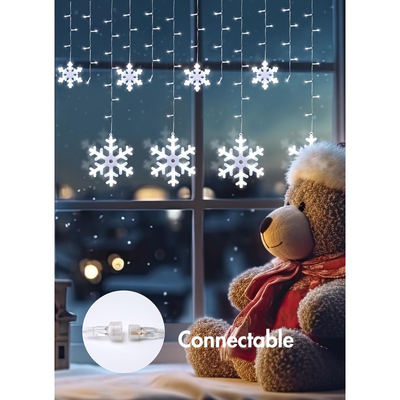 - 2 Set of Snowflake Icicle Christmas Lights Outdoor: Each set is adorned with 6 pieces of 7.5-inch large and 6 pieces of 4.3-inch small snowflakes, the snowflake string lights outdoor adding a festive and magical touch to any holiday display
