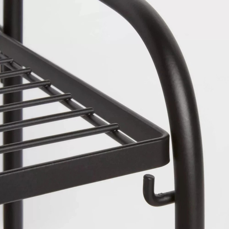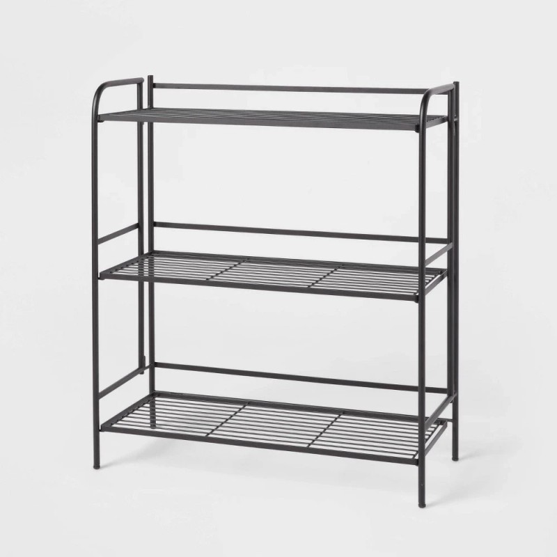 Organize your bath or cleaning essentials in sleek, simple style with the Folding 3 Shelves in Black from Brightroom. This standing shelf for storage is set on a black metal frame for a modern look that works well in a variety of spaces and decor styles. Multiple open shelves provide enough space for your items and easy access to them. With the foldable design, this metal-frame shelf is easy to move and store when not in use.