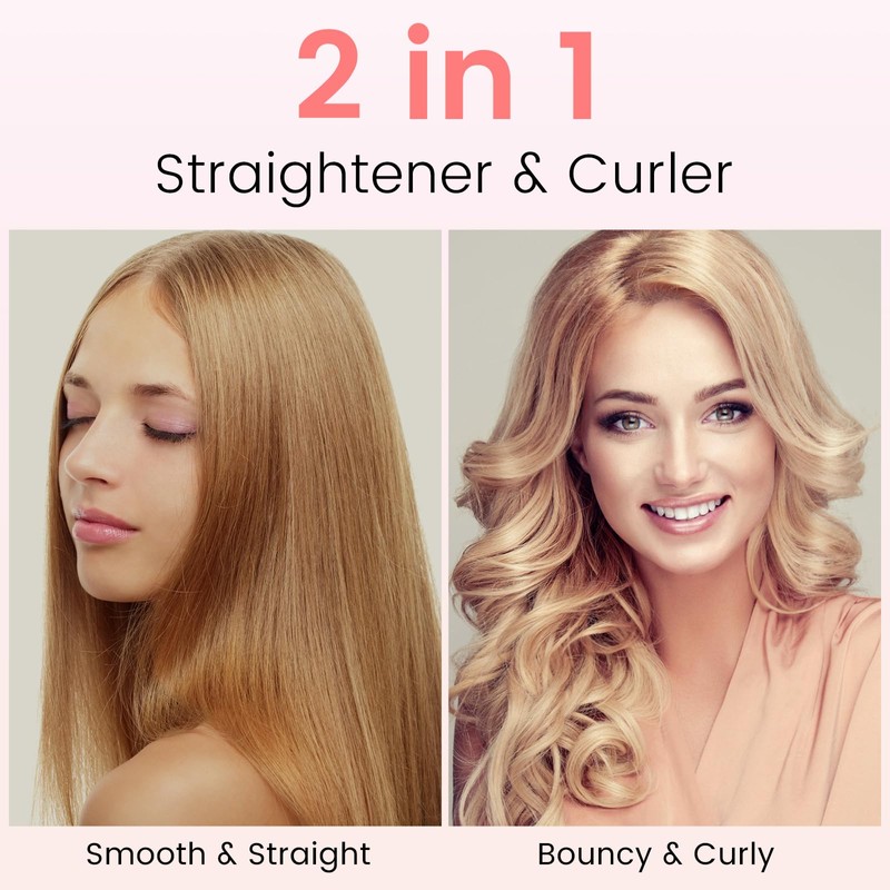 - Easy to Use: Dual voltage, 100V-240V. The power cord can be swiveled 360°, which can avoid the straightener for women from getting tangled. The handle of the flat iron curling iron in one is non-slip and ergonomic design, comfortable grip.