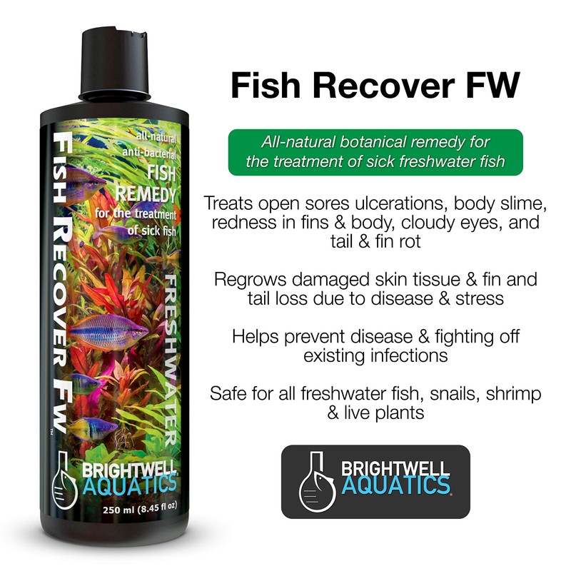 Brightwell Aquatics Brightwell Fish Recover FW - All-Natural Fish Remedy for Treating Sick Freshwater Fish, 500 ml