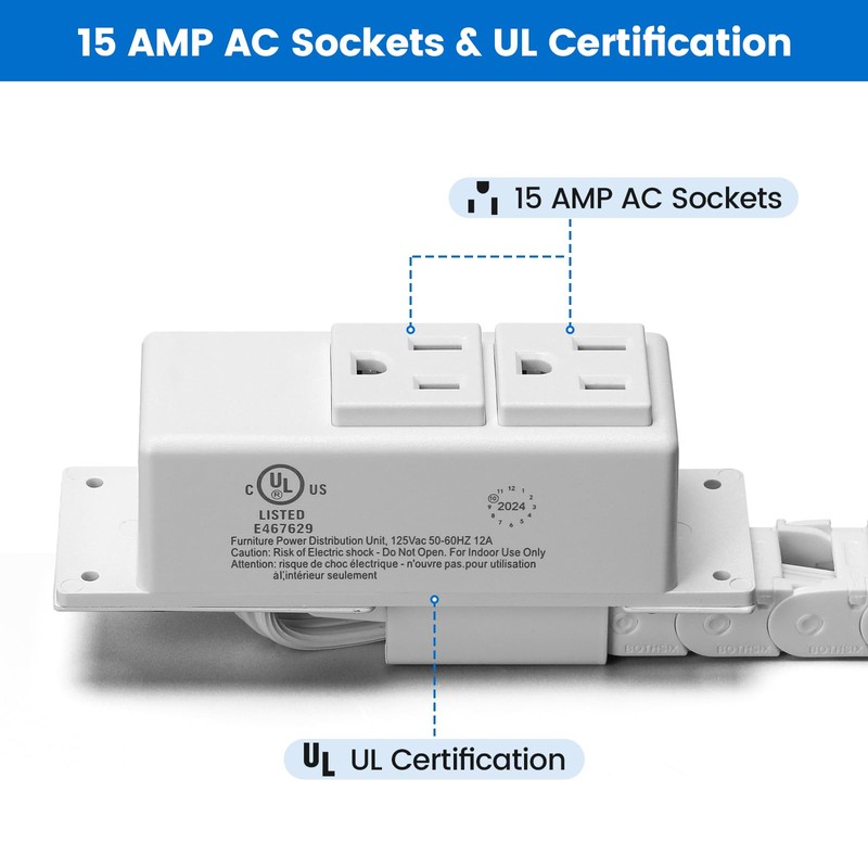 • SOCKET CONFIGURATION: Equipped with two 15-amp AC outlets, this outlet kit is UL certified for safety and reliability. Ideal for charging devices like hairdryers, curling irons, and smartphones, and more, all while keeping your drawer tidy