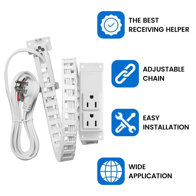 • ADJUSTABLE CHAIN: The cable length is retractable and regulates to fit your drawer, while protecting the power line from wear