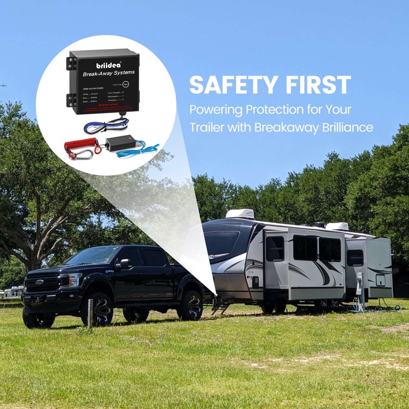 briidea Trailer Brakeaway Kit, Trailer Brakes Breakaway Kit with 12V 5AH Battery and Charger, LED Indicator, All Metal Waterproof Enclosure, Designed for Safe Towing, Ensure Your Driving Safety
