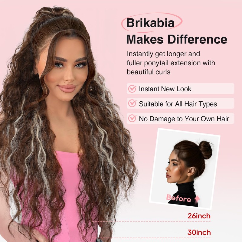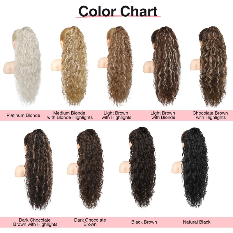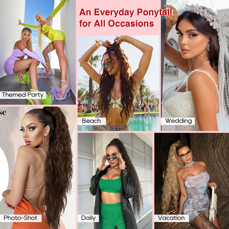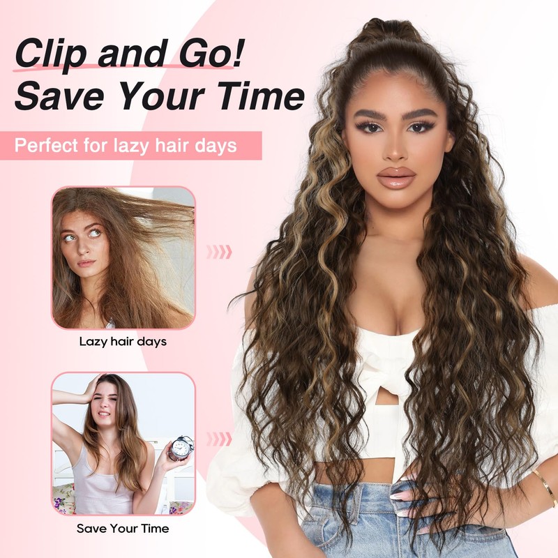 - 30” Long Curly Ponytail - Instantly elevate your hairstyle with the long ponytail extension. This pony tail hair extension effortlessly adds volume and length in seconds—perfect for busy mornings, night outings, or special occasions.