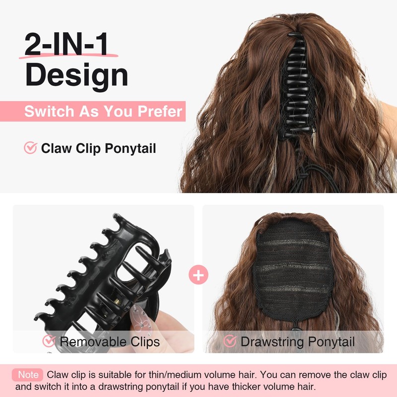 - Secure, Comfortable All Day: The claw clip ponytail extension features a strong-hold clip that ensures a firm grip, staying securely in place even during dancing, running, or jumping. Blending seamlessly with your natural hair