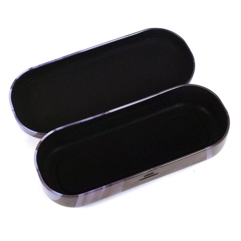 Beautifully coloured on the outside and sits well in the hand, flocked inside with black velvet. Your glasses will almost no longer want to go out.