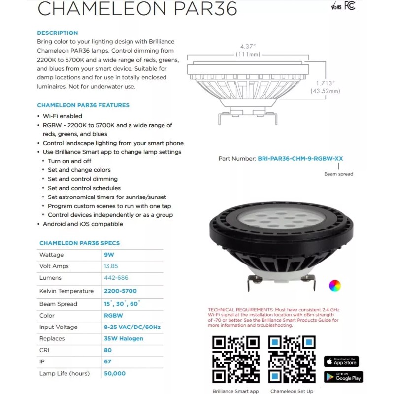 Brilliance BRI-PAR36-CHM-9-RGBW-60 Chameleon PAR-36 9W LED 2200-5700K w/ WiFi