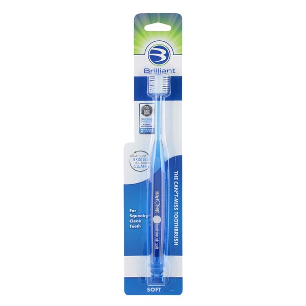 Brilliant! by HartFelt - The toothbrush with 360 degree, rounded-tip, soft bristles is truly innovative, it is the world's first 360 degree designed toothbrush. Developed in the Osaka university dental hospital of Japan, the Brilliant! Toothbrush has unparalleled cleaning power thanks to over 10,000 micro fine bristles-10 times more than the average toothbrush. Circular rings firmly hold bristles in place, while spacing washers between bristle layers make it more effective for removing plaque and keeping the brush clean. Works great for cleaning the tongue and for massaging gums. Take a Brilliant Toothbrush to work, out camping, or on the road, as it may be used effectively with water alone when you are on the go. To use, just wet the toothbrush and brush more gently than usual. There is no need to turn, spin, or twist your wrist as you brush. Why bother with sharp, cross cut bristles, or the challenge of holding the toothbrush at a 45 degree angle. With the Brilliant! Toothbrush's round head, you can easily and effective brush and polish for a brilliant smile. The Brilliant! by HartFelt Adult Soft Toothbrush provides continued oral care for children who use baby buddy's oral care program, also from Compac Industries, and is intended for ages 12 and up.