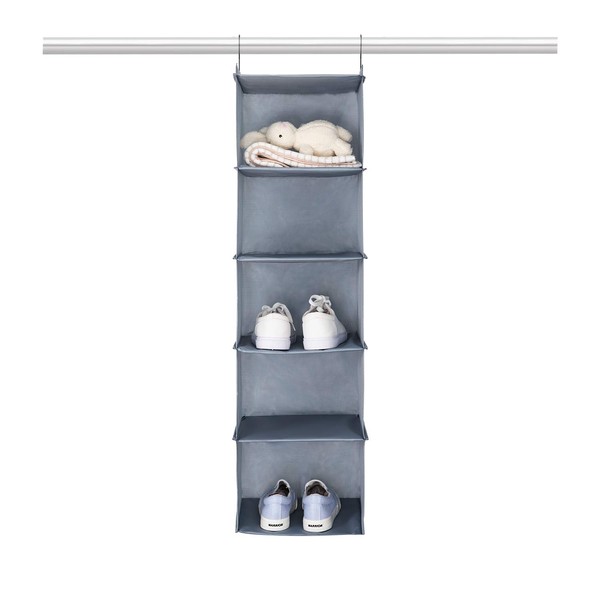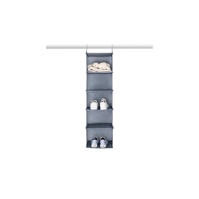 - Wardrobe organiser made of Oxford fabric with 5 compartments and 2 hooks (30 x 30 x 108 cm): simply hang over the clothes rail, is a small hanging shelf wardrobe, is a good helper for business trips, travel and home.