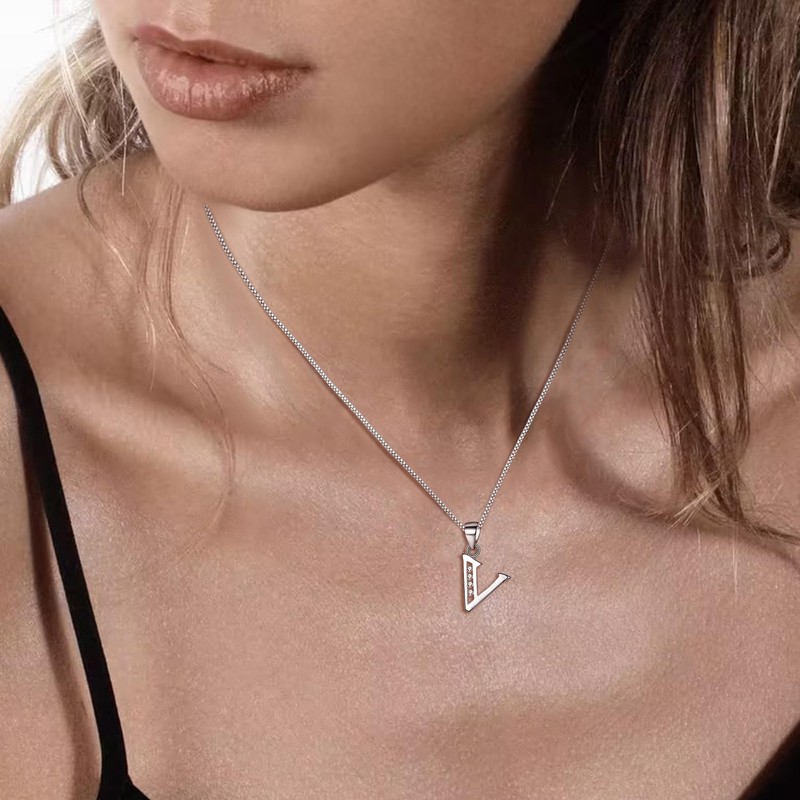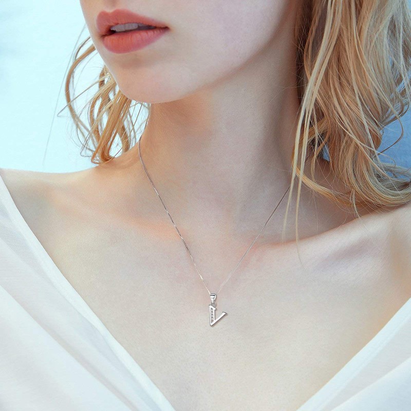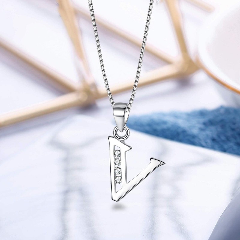 BriLove 925 Sterling Silver Cubic Zirconia 26 Letters Name Personalized Charm Statement Pendant Initial V Necklace
