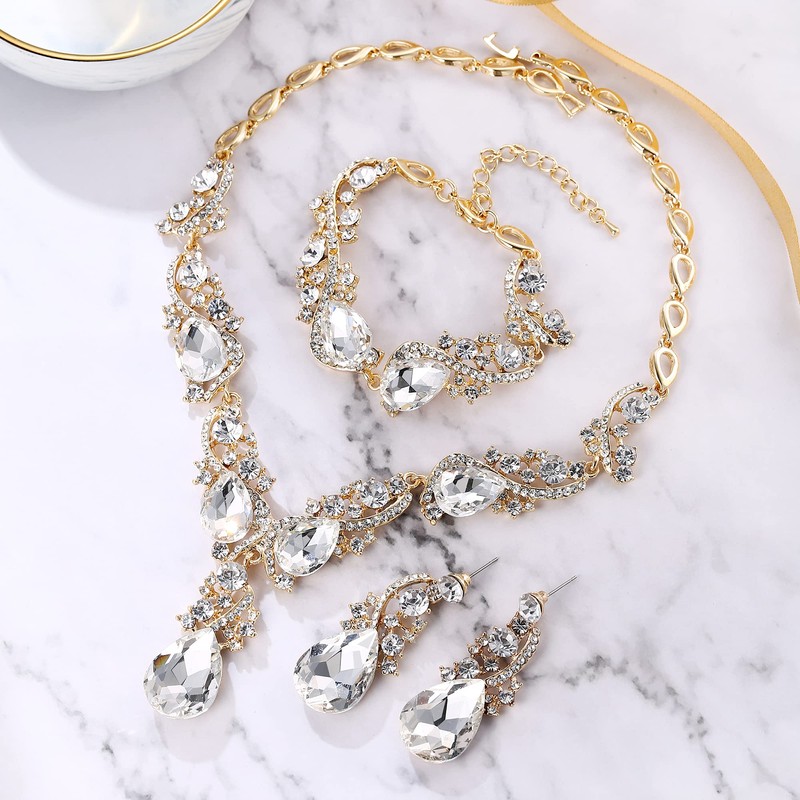 - Design& Material: Wedding jewelry set for bride.With a fabulous design and solid construction.The classic and elegant always keep pace with fashion,which will make a timeless accessory to any jewelry collection. Can be worn with classy casual with formal attire or Wedding dress ,never goes out of style.Adorned with selected Crystal, crafted with eco-friendly Zinc alloy, Lead-Free & Nickel-Free, this special design is born to match the clothes and your unique beauty.